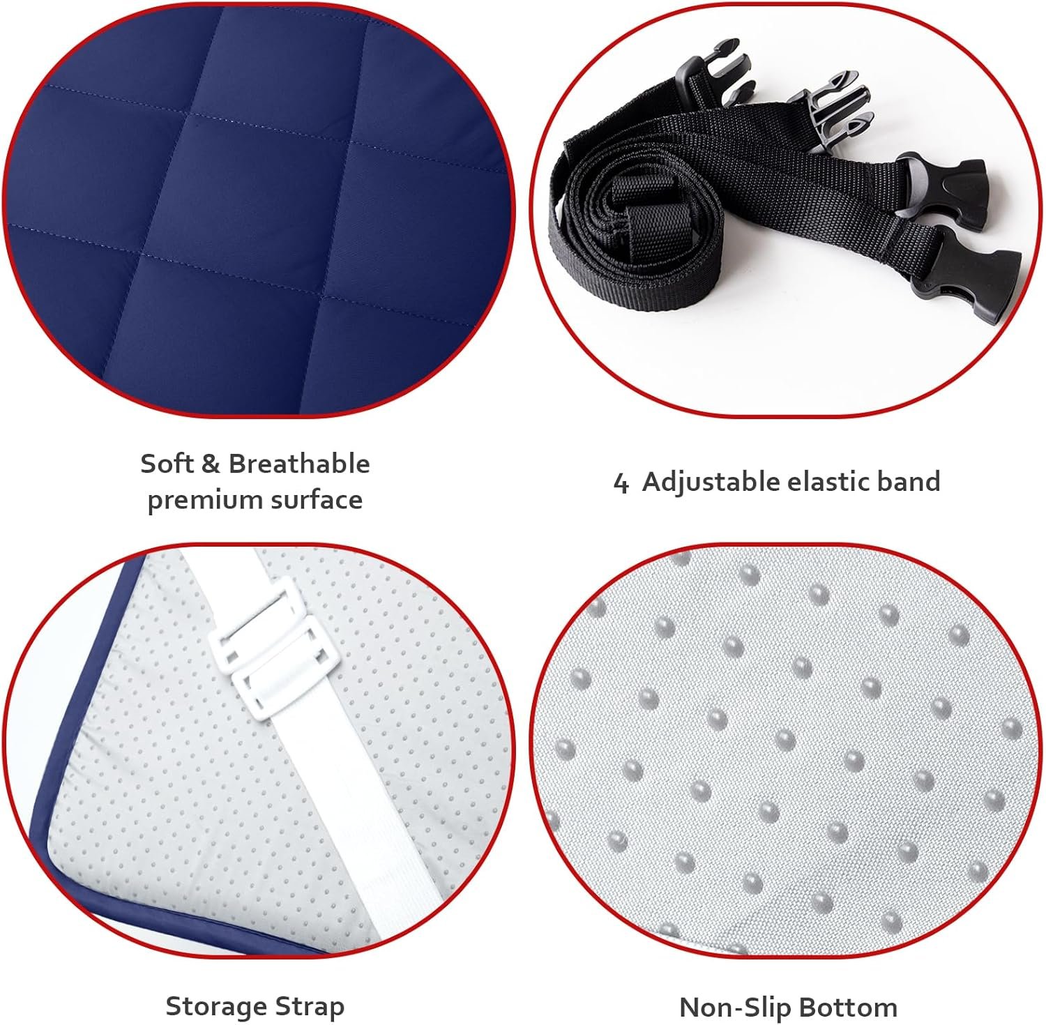 - Comforter and Cushioning: Our camping cot mattress pad is made of premium microfiber surface, quilted with soft foam filling for cushioning and the bottom constructed with anti-slip dots.